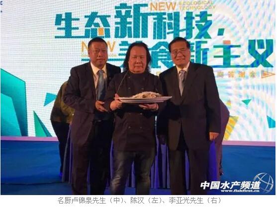 “食味美、材质先”,美味的菜肴,材料品质是第一位!中国烹饪国家级评委、中华厨皇、世界厨皇会常务副主席卢锦泉先生用精湛的厨艺现场烹饪了两道名菜“果丝蒸斑鱼”、“沙芥蟹子虾”,当场赢得国内与国际友人的热烈掌声。其使用的原材料为国联水产新推产品“微冻石斑鱼”与“水煮汉虾”。“我们的微冻石斑鱼即使冰冻2年后取出再做食材,其品质与鲜活鱼一模一样。”国联水产总经理陈汉补充,“今天的展会上,一位加拿大采购商见到我们的技术,就立即订购了2个货柜。”可以看出,三年之前国联水产已开始规划国内市场的布局,投入资金开发“微冻技术”将大大降低内陆地区海水鱼的保鲜成本,为喜爱海水鱼类的内陆消费者带来福音。