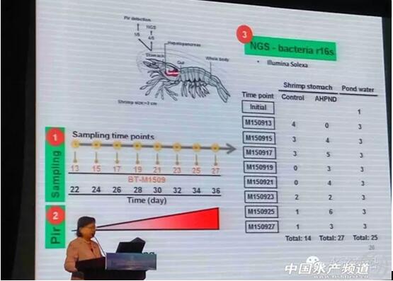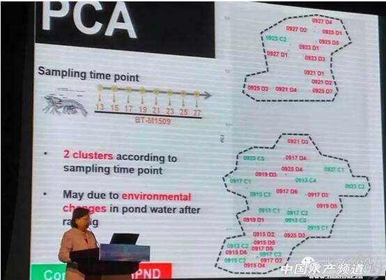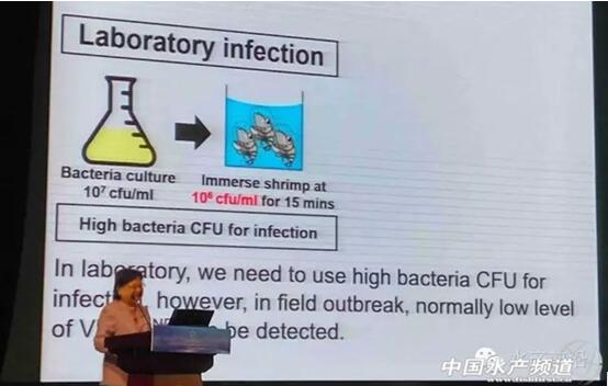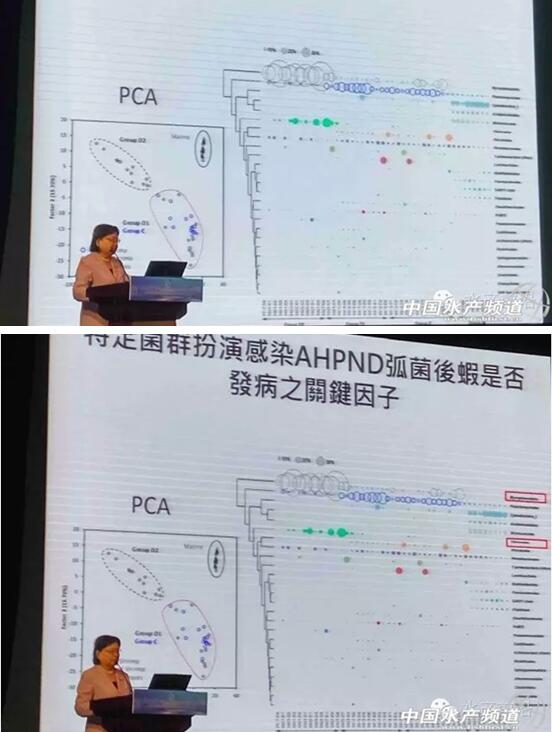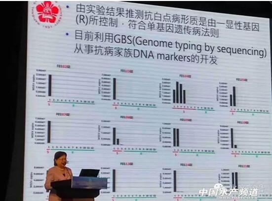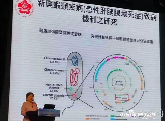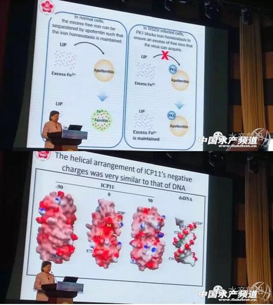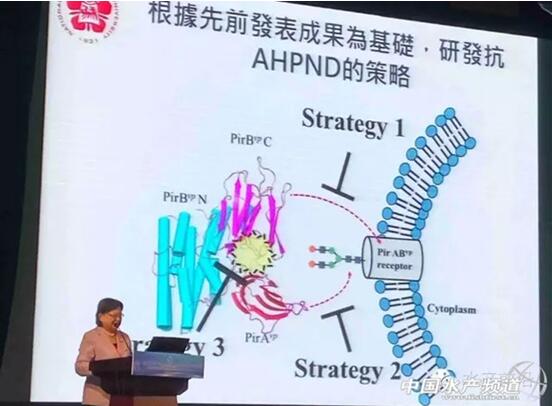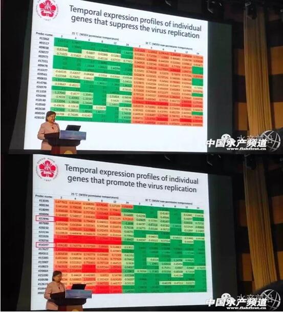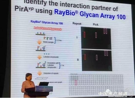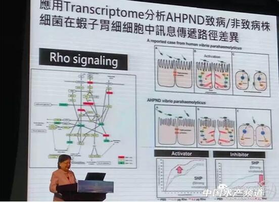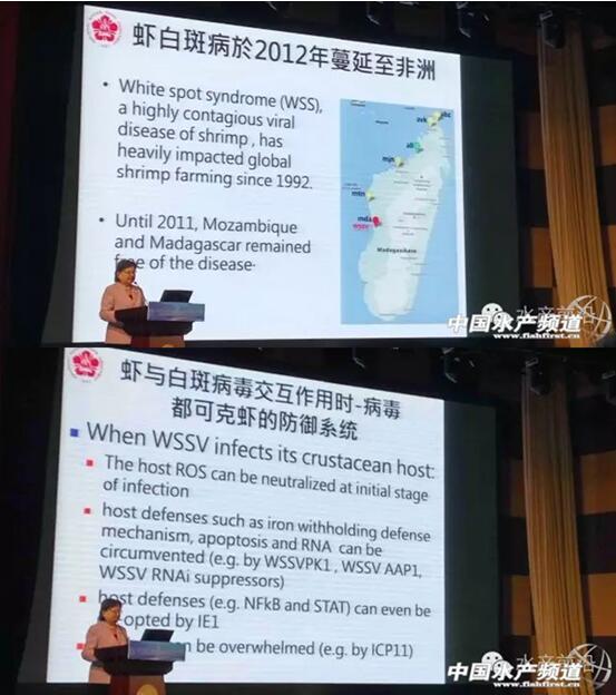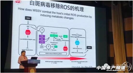 来自台湾成功大学的罗竹芳老师做了《虾白斑病及急性肝胰腺坏死症的研究进展》的报告,详细地解释了虾在选育对抗白斑病毒品种上的原理,引起了与会人员的重要关注。