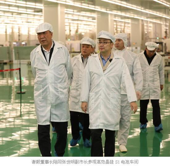 当天下午,张世明副市长一行还前往通威太阳能(成都)有限公司,在通威太阳能(合肥、成都)有限公司董事长谢毅的陪同下,参观了高效晶硅S1电池车间,详细了解了电池片的生产工艺流程和车间设备使用情况,张副市长对电池车间设备的高度自动化给予了充分肯定和高度赞赏。