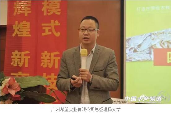 “广州希望自我定位为养殖效益管理专家,目标是打造专业水产第一品牌、高性价比水产饲料第一品牌,”新希望六和技术部营养师李宾在《打造爆品营养快车——成就广州希望专业水产品牌》的报告中说到,“我们利用集团的技术研发的优势,推出了具有革命性的全新的生物饲料,例如,推出了在料比、长速方面优势特别明显的叫“营养快车”的草鱼膨化生物鱼饲料和主打罗非鱼的“罗非精”,未来我们还会继续聚焦在草鱼和罗非鱼这两条鱼之上。聚焦产品才能更快形成良好的口碑和品牌效应,誓要做成广东性价比最高的草鱼料和罗非料。”
