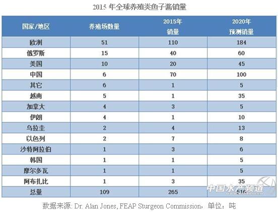 来自鲟鱼市场的警告 据法国前鲟鱼养殖场老板和欧洲鲟鱼协会创始人Alan Jones博士的预测,养殖类鱼子酱的产量预计将从2015年的265吨翻倍至2020年的516吨,市场能否吸收?