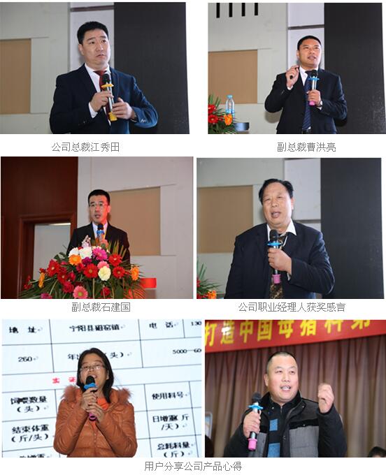年会由公司副总裁石建国主持。公司副总裁曹洪亮总经理回顾公司发展历程。主要从“产品研发、原料控制、制程控制、各生产基地介绍、技术服务团队”等五个方面做了详细而全面的报告。曹总总结了公司2016年所取得的成绩与突破,并对富华伟农家人的辛勤付出表示感谢。富华伟农江秀田总裁做了2017年发展规划重要讲座。江总首先总体阐述了我国饲料工业目前呈现增长缓慢、企业数量减少、饲料微利时代三大趋势。进而分析我国当前养殖业形势。江董倡导“用产业思维去思考饲料行业未来发展”,江董针对富华伟农如何将企业发展规划实施推进进行了介绍。江董还强调企业文化建设重要性,富华伟农“实干、创新、感恩、共享”的企业文化已在发展壮大中渗透到每位员工及用户心中。最后江董提出公司将致力于打造“养殖服务型公司”。为公司全面发展提供强有力保障。