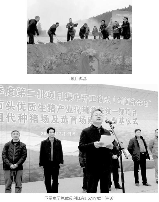 据了解,2016年7月,巨星农牧与剑阁县政府签订100万头优质生猪全产业链精准扶贫项目合作协议,建造5000头祖代核心猪场是其中的首期工程。该猪场的动工,标志着剑阁县百万头生猪项目正式启动。