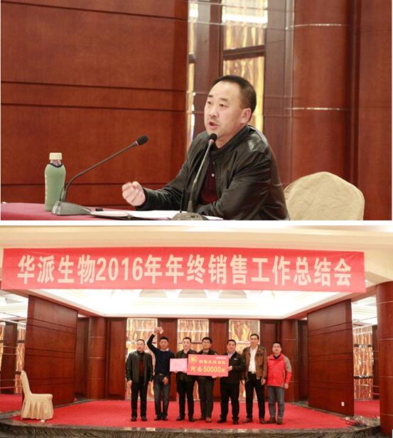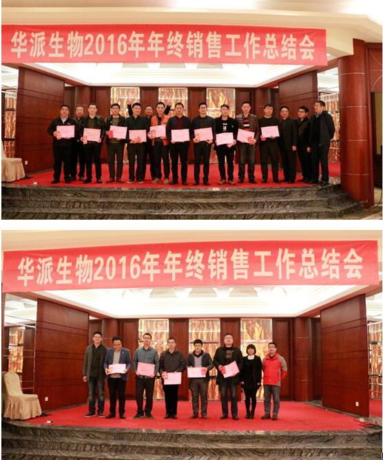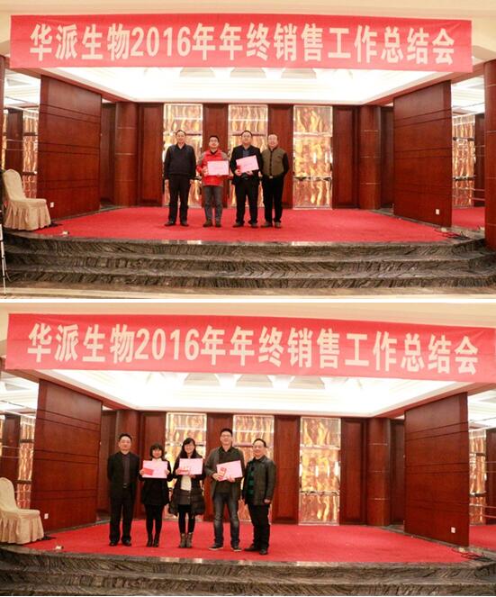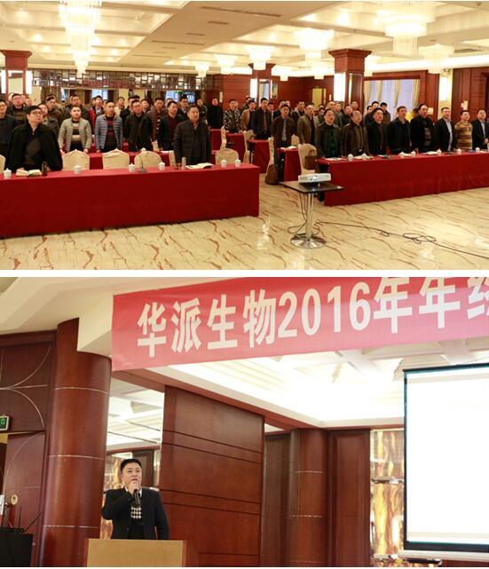 2016年12月29日-31日,华派生物2016年年终销售总结会在简阳市昕雅图酒店隆重召开。有来自全国一线的销售精英、公司中高层以上领导,共120人参加会议。华派生物工程集团董事长、总裁谢建勇到会并作重要指示。
