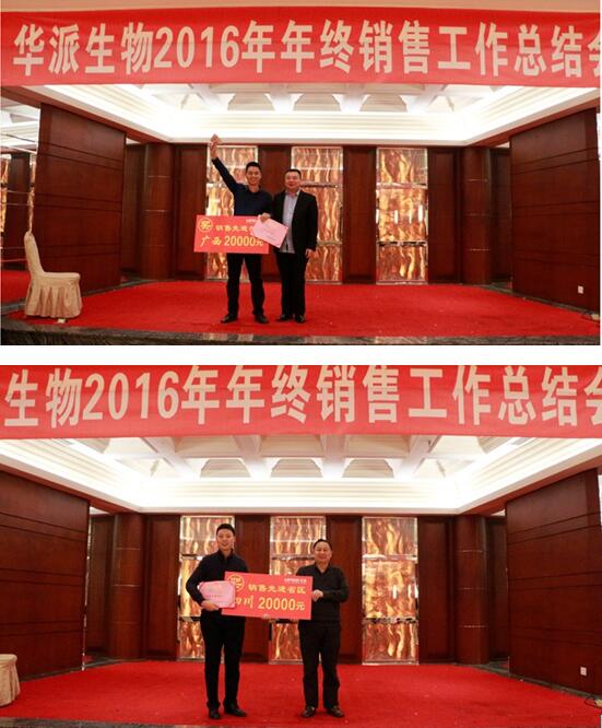 为了表彰先进激励后进,会议对2016年的销售工作进行了全面评比。评选出了销售先进省区、销售先进个人、销售鼓励奖、2016年度金牌讲师、宣传推广奖和销售组织管理奖6大类奖项,公司领导分别向获奖团队和人员颁发了奖状和奖金。