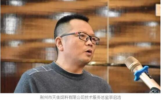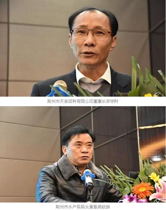 1月5日,荆州市天佳饲料有限公司(简称“天佳”)华中地区黄颡鱼养殖新模式技术研讨会在荆州安盛国际大酒店举行。荆州市水产局局长黄服亮、荆州市畜牧局副局长欧阳金旭、荆州市畜牧局饲料办主任李洪波、华中农业大学水产学院党委书记张韶东、华中农业大学水产学院教授樊启学、华中农业大学水产学院教授顾泽茂、长江大学动物科学院副院长李鹏、湖北垄上频道水产专家张生、广州市联鲲生物科技有限公司技术总监章太卓、广东德宁生物技术有限公司高级顾问丁庆秋、广州市诚一水产科技有限公司技术博士李家庆等嘉宾以及经销商和养殖户共300余人参与此次会议。