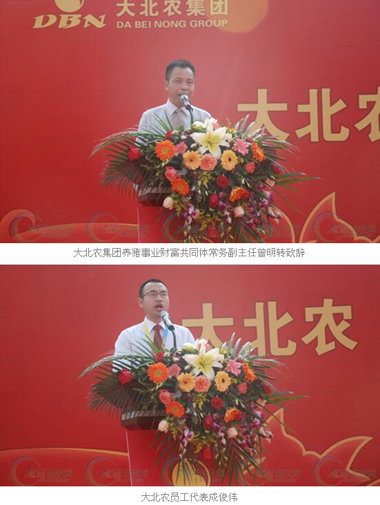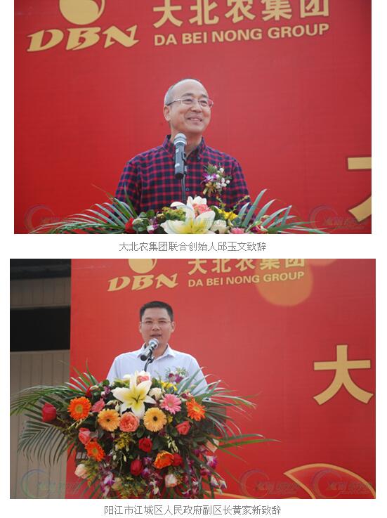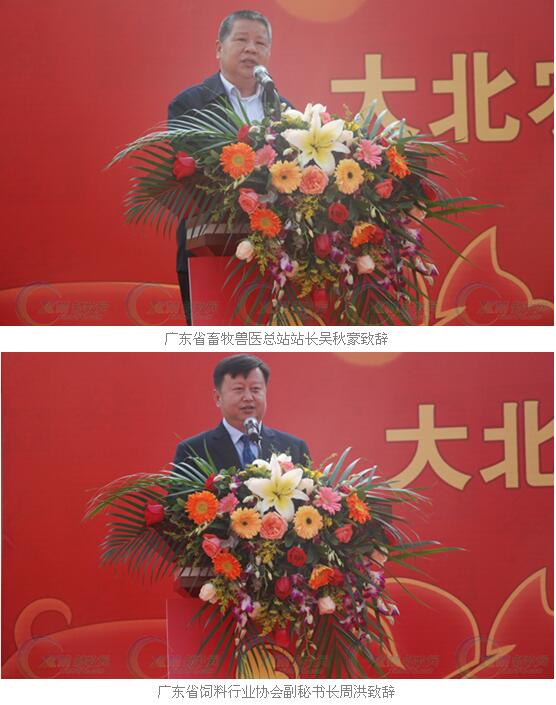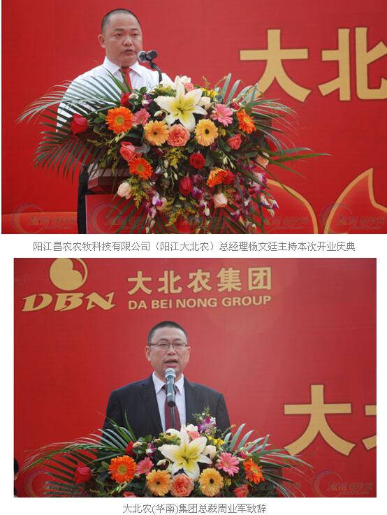 现场,包括大北农(华南)集团总裁周业军、大北农集团联合创始人邱玉文、阳江昌农农牧科技有限公司(阳江大北农)总经理杨文廷、阳江市江城区人民政府副区长黄家新、广东省畜牧兽医总站站长吴秋豪、广东省饲料行业协会副秘书长周洪、大北农集团养猪事业财富共同体常务副主任曾明转等领导、嘉宾出席开业庆典并致辞。