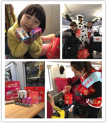 此外,为进一步增强消费者对光明乳业产品的认知度和体验度,首发仪式结束后,光明乳业的工作人员走上G14次列车,开展“乐在2017”学生奶关爱儿童爱心公益活动。