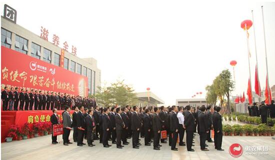 下午16时25分,伴随着嘹亮的国歌,鲜红的国旗和傲农旗帜迎风升起,集团决战2017年助威出征仪式暨漳州科技园助威仪式正式开始。