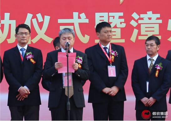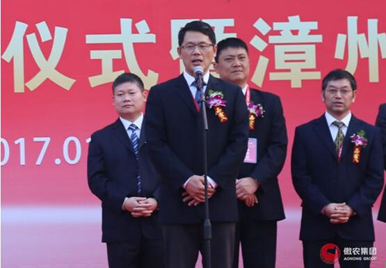 集团北方区总裁彭成洲发表漳州科技园助威仪式致词。他表示,科技园项目建成是傲农集团发展史上具有里程碑意义的事件,在各级政府、领导、各界人士的大力支持下,漳州科技园全体干部员工定能肩负起集团核心基地的使命和责任,规范、安全、高效运营,为傲农事业发展做出更大的贡献。