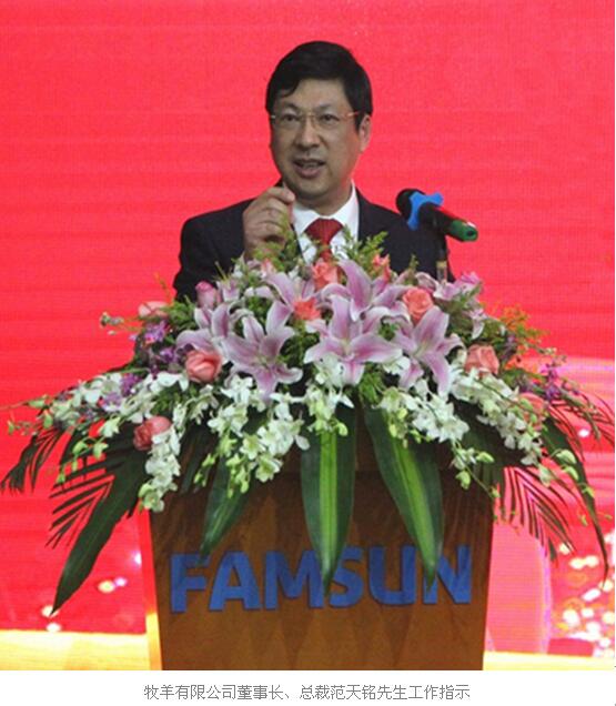此次大会上,公司全新设计的蓝色“丰尚”中文标志首次浮现在大家面前,“丰尚”是英文标志“FAMSUN”的音译,二者共同组成了牧羊最新全球品牌标志。“丰”代表丰收、丰产、丰富,既体现我们为客户创造的价值是丰收、丰产,也表现公司产品线的丰富性与多样化,与农牧行业性质的高度契合;“尚”代表行业风向标、积累加高之意,体现了牧羊产品的先进性与优越性,同时也表明公司未来的发展方向是引领行业潮流,带动行业发展。同时体现了全体牧羊人脚踏实地、勤奋向上的精神面貌。“尚”还有“美好”的含义,体现牧羊在产品设计、制造、安装等过程中,精益求精,力求完美交付。范总裁曾表示,“我们要以热忱的服务提供全产业链系统解决方案,切实实现从田园到餐桌的无缝对接、标准化管理。”