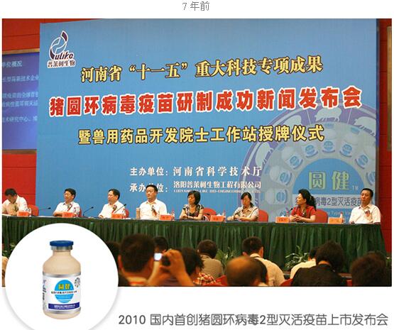 7年前,同一个会场,普莱柯公司成功发布国内第一个猪圆环病毒2型灭活疫苗上市,打破了跨国企业对该产品的垄断,普莱柯以领先的科技创新水平实现了圆环病毒疫苗的首家国产化,为养猪业带来了真真切切的实惠!