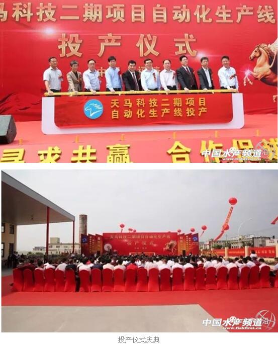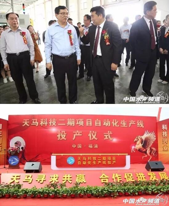 4月17日,福建天马科技集团股份有限公司(以下简称“天马科技”)以“天马寻求共赢,合作促进发展”为主题,在上迳镇岭脚村开展二期扩建项目(以下简称“二期项目”)投产仪式。中共福州市常委、福清市委书记王进足、福建省口岸办原主任陈松青、中国农业科学院北京畜牧兽医研究所所长、中国动物卫生与流行病学中心北京分中心主任秦玉昌、福建省企业与企业家联合执行副主席郭国华、福清市人大常委会主任林中、福清市政协主席林健、福清市企业与企业家联合会长蔡萍萍、福建省工业饲料协会会长曾丽莉、福建省饲料与兽药管理处原处长兰坪亮、中国渔业协会鳗委会秘书长刘兆均、中共福清市委常委、教育工委书记陈恒东、福清市政府副市长李文清、中国大黄鱼协会会长刘家富、福建省水产饲料研究会名誉理事长陈启发、福建省水产饲料研究会理事长艾春香、天马科技董事长兼总裁陈庆堂以及福清市委办、福清市政府办、福清市经信局、上迳镇党委政府等各级政府代表、行业协会代表、会计师事务所、金融机构、行业协会、全国各地客户代表等共两百余人共襄盛举。