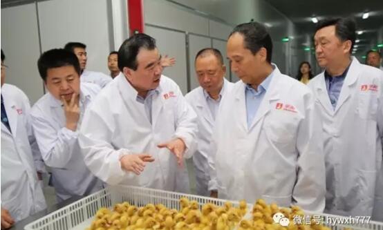 4日下午,吉炳轩一行专程来到华英集团,实地参观了华英种鸭五场、饲料三厂、羽绒制品公司和禽类加工六厂,听取华英集团董事长曹家富关于公司在扶贫工作、企业发展、未来规划等方面的专题汇报。他对华英集团27年来在产业扶贫和自身发展中所取得的成就表示肯定。他赞扬华英为农业企业在自身发展和产业扶贫方面提供了很好的经验,鼓励华英保证好质量,保护好品牌,在产业扶贫的道路上越走越好,为河南做贡献,为国家做贡献。他强调,企业只要把产业做大,就能带动更多的农民脱贫,因此对华英这样能够带动农民致富的龙头企业,政府部门要给予很好的扶持。