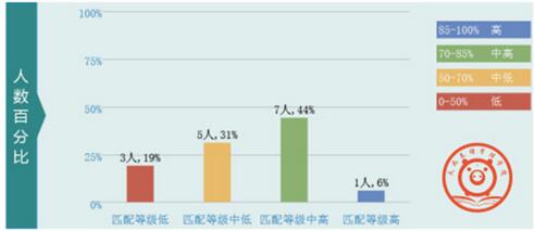Ø 综合评估 将目标岗位的胜任力分析作为标杆,寻找尽可能接近或有培养潜能的“千里马”,这是选拔小组的工作原则。通过几轮的较量、评分,结合科学的数据分析,对本次竞聘16名人员整体匹配度进行团队分析,平均匹配度为 65%,匹配度最高为86%,最低为 28%。