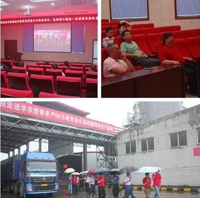 午餐结束后,王总一行在华农恒青李旭荣董事长及相关主管的陪同下一同前往华农恒青高安基地的生产车间、原料仓库及华农恒青江西科技服务中心进行了实地参观;最后,在华农恒青江西科技服务中心三楼多媒体培训室作了观影交流并合影留念。