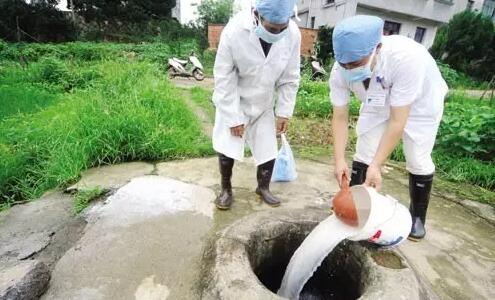 水灾过后,井水质量变差,有的污染无法使用。为了防止饮水污染引起疫病的发生,要严格关注井水质量的变化。水源较浅的井水,最好在抽取井水进行消毒后再给猪饮用。对于可能受到猪粪便、污水、垃圾和赃物等污染的井水,不但要淘洗井水,投入消毒药之后,还应暂停一段时间,以后再用。