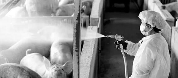 2、猪体的消毒。猪体进行喷雾消毒,比较全面彻底,既能直接杀灭隐藏于猪舍内环境,包括空气中的病原微生物,又能直接杀灭猪体表、呼吸道浅表滞留的病原体。对猪瘟、口蹄疫等有良好的预防作用;对细菌性疾病,如猪葡萄球菌、附红细胞体、大肠杆菌等有很好的防治作用。喷洒消毒后,在畜舍内再次喷洒护舍安,不仅改善微生态环境,还能沉降粉尘、防暑降温、提供湿度、净化空气、改善猪舍环境的空气质量。