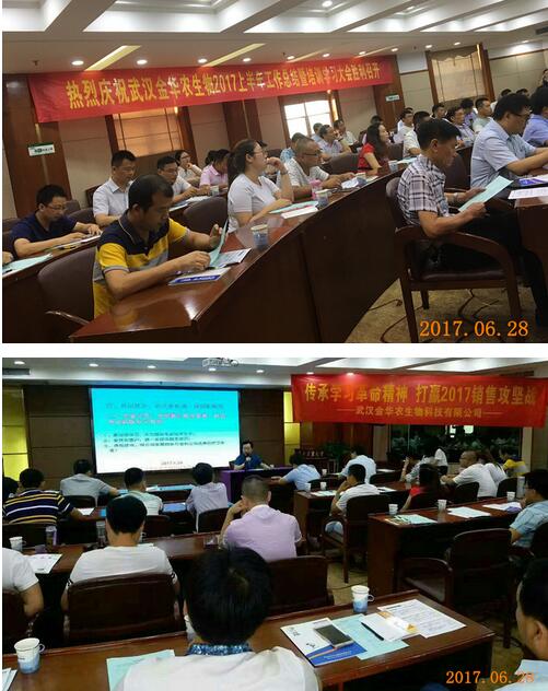 6月27日至30日,武汉金华农生物科技有限公司2017年上半年工作总结暨下半年工作部署会议,在华中农业大学成功召开。来自全国各地的精英代表,齐聚狮子山下,向公司交上满意的业绩单。截止今年6月底,公司业绩实现16.2%的增幅,销售额达近五年来同期新高。