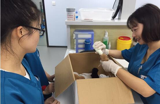 医院的医生正为一出生就被遗弃的猫咪天使喂食。每一个降临人间的生命都值得善待和厚爱。