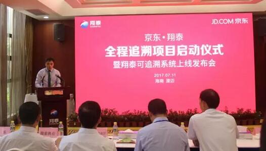 京东、翔泰、海南省检验检疫局、澄迈县政府共同启动京东翔泰追溯系统 7月11日上午,京东&翔泰全程可追溯系统启用发布会在海南翔泰渔业股份有限公司举行,翔泰全程可追溯系统正式在京东平台上启用。未来翔泰通过京东区块链技术实现全程品质溯源,让海产品从“海洋”到“餐桌”各个环节更加透明,让消费者吃到真正安全、健康、优质的海产品。