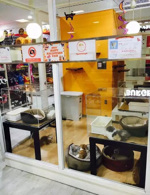 日本崇尚动物和人和谐相处,因此这个宠物中心不仅有猫狗用品,还有爬行动物及其他小宠物的相关用品销售。