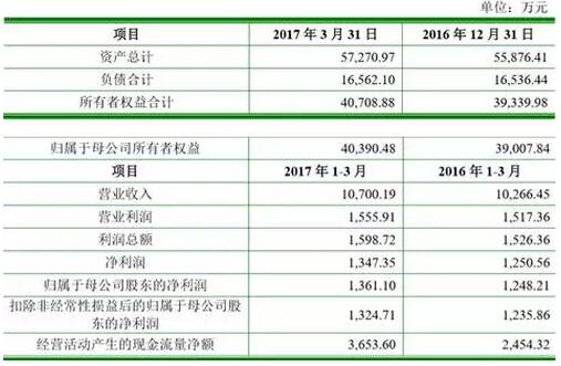 据佩蒂股份招股说明书一季度财务报表,2017年1-3月,佩蒂股份实现营业收入10,700.19万元,较上年同期增长4.22%,实现利润总额1,598.72万元,较上年同期增长4.74%;实现归属于母公司的扣除非经常性损益的净利润1,324.71万元,较上年同期增长7.19%。总体来看,2017年1-3月公司经营情况平稳,经营业绩与去年同期相比略有增长。