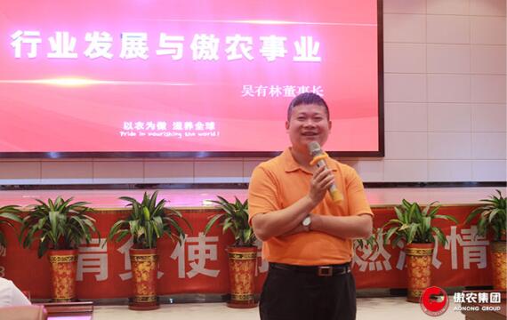 训期,集团董事长吴有林做了“行业发展与傲农事业”的主题交流。吴董事长分析了当前农牧行业的现状及发展态势,阐述了公司结合当前形势变化开展此次培训的重要意义。他指出,农牧行业是朝阳产业,当前我国农牧业正处于转型升级的关键时期,怎么转型,如何升级,对农牧企业来说,每一步都需要经过具体的实践,然后深思熟虑地细化。他希望此次参训的公司干部要抓住机会,进一步明确自身优势和岗位特性,提高工作效率,以归零的心态投入到二次创业中,把傲农价值做出来。