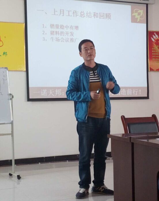 接着,集团选取了对猪市场经验丰富的武洪杰武经理、孙亚楠孙老师详细讲解了猪料产品的特点与实验注意事项。武经理从教槽料的成分、生产工艺及适口性、教槽料实验的注意事项及方法作了详细的阐述,武经理以人的成长轨迹比喻猪的成长轨迹,从不同阶段需要的营养成分及身体消化吸收程度出发,让各位家人能切身了解猪、了解产品能给予猪的意义。而孙老师从自身遇到的案例出发,为家人详细讲解猪产品的特点、与客户沟通的方法及遇到猪问题的解决办法。有这些优秀猪料老师的指导,家人们一定会在猪的世界收获不一样的精彩。
