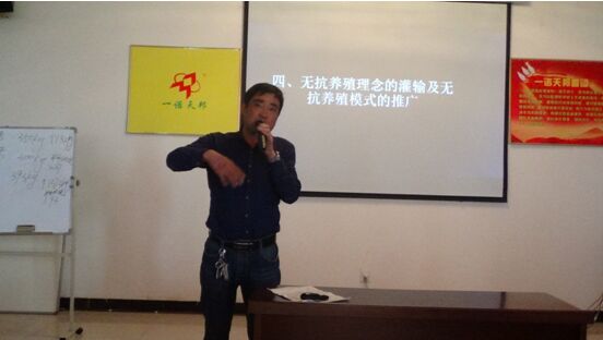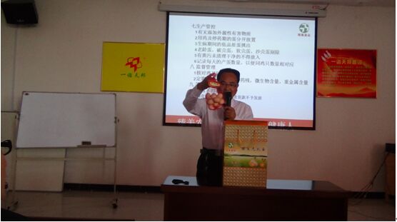 产品的开发与推广经验交流 下午2时,由臻美蛋品的刘济贤刘总就“无抗蛋规范化生产操作流程”作了详尽的讲解。刘总提到:人们的健康一直是重中之重,而臻美蛋品更是为此而来。刘总一再强调臻美从养殖户那收回的鸡蛋必须是无抗,无抗生素,符合安全标准的,否则利润再高也坚决不收。这不仅为养殖户解决了卖蛋难的问题,更是对集团“健康的动物、安全的食品、健康的人类”的企业愿景做了最好的诠释。