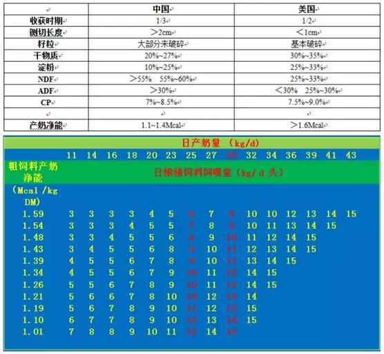 国内与其他国家青贮玉米制作的差距在哪里? 同时,不同产奶净能水平下干物质日粮中精饲料的饲喂比例是不一样的,粗饲料营养价值越高,精料就会越少,这个道理已经讲了很多了,我也就不再赘述。