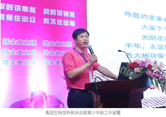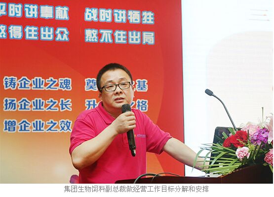 董事长的报告引起大家广泛而热烈的讨论,各公司负责人依次上台分享自己的感受体会、第三季度工作目标和实现目标的具体措施,上季度成绩优异的团队负责人代表还与大家分享了怎样当领导、怎样招揽人才和怎样打造铁军的秘诀。结合董事长报告,集团生物饲料板块总裁莫少华对第三季度有关工作进行了部署,集团生物饲料板块营销副总裁唐志就第三季度经营工作进行了目标分解和安排,集团生物饲料板块副总裁吴忠亚进行了最新营销工具和PSY+资源云推广机制的发布。
