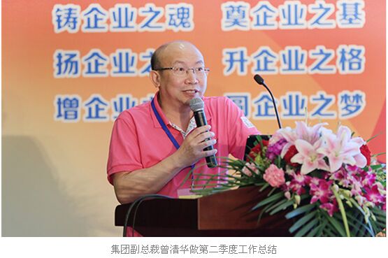 刘钧贻董事长作题为《拥抱竞争,把经营升级(2.0)和管理生根(2.0)推向更高境界》重要主题报告,将本次大会推向高潮。董事长强调,经营升级和管理生根主题虽是老生常谈,但希望是常谈常新。我们要充分认识每一名员工都是一座金矿,要通过有效催化剂来挖掘每一个人的创造潜力;要浇灌"为金色的黑猪梦奋斗奋斗再奋斗"的组织魂魄;要激活人才地图,全员跑马荐人圈人;要认识到平台和趋势的重要性,做强平台能量;还要升级变革组织模式,做到业务单位阿米巴化、阿米巴单位"雷锋突击队"化等,为各单位第三季度及下半年工作指明了方向。