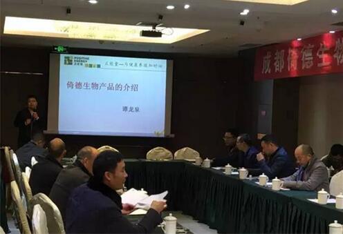 联盟总结会结束后,联盟成员代表与三家承办单位进行了深入的技术交流。成都倚德生物技术服务部谭龙泉博士向联盟企业详细介绍了功能性油脂在饲料中的应用。随后成都朴瑞威技术经理李彬和北京菲迪饮料杜总分别就“新型甜味剂在饲料企业中的应用”、“植物精油在饲料企业中应用的趋势”进行了精彩分享。