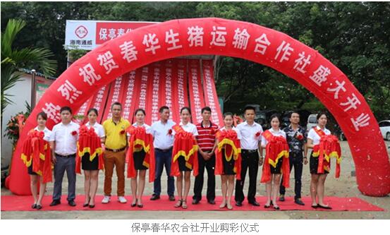 5月26日,由海南通威全程参与的首家通威农合社“保亭春华生猪运输专业合作社”(以下简称:保亭春华合作社)在保亭地区盛大开业。开业活动受到当地政府、媒体及社会各界的高度关注和支持,300余位经销商及养殖户来到现场观摩。