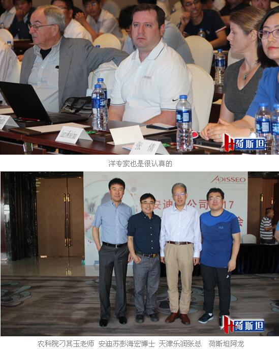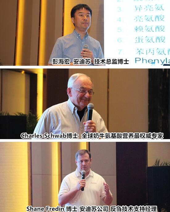 会议由上海安迪苏主办,天津乐润协办,来自首农畜牧、天津嘉立荷、华夏畜牧、天津奶牛发展中心、海华云都、天津大老李、天津神驰、保定双丰等京津冀50余家牧场代表,中国农大、中国农科院、天津畜牧兽医研究所、北京农学院等科研单位代表,安迪苏、嘉吉、泰高、长春博瑞、上海康臣、大北农、英联、萨诺、楷行咨询、禾丰、中粮饲料、永和荣达、北京健优生物、九州大地等企业代表200余人出席会议。来自全球奶牛氨基酸营养最权威专家 Charles Schwab 博士 、美国Vita Plus公司营养师Laurie Winkelman 博士 、安迪苏公司反刍技术支持经理Shane Fredin 博士以及安迪苏技术总监彭海宏博士(代安迪苏全球反刍业务总监Brian Sloan博士)四位专家进行专题讲座。会议由天津乐润总经理张景学主持。
