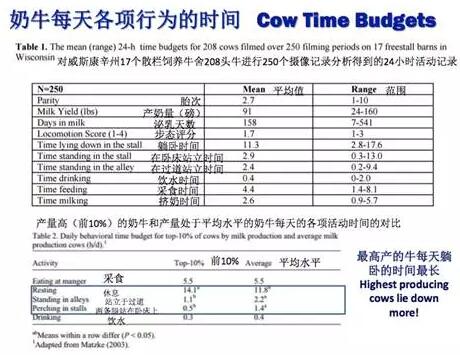 非日粮因素同样重要:管理因素占总变量的56%,过度拥挤每头牛牛栏数占总变量的32%(减少躺卧时间、反刍、蹄病),奶牛需要足够的空间、舒适度、充足的休息,奶牛的舒适度是高产量必不可少的,奶牛每天需要休息、躺卧10~14小时。