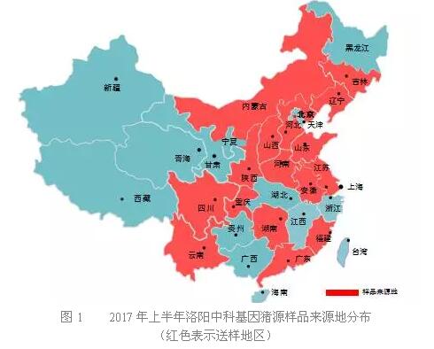 2017年上半年,洛阳中科基因共接收来自河南、福建、山东等19个省市的猪源样品,详见图1。