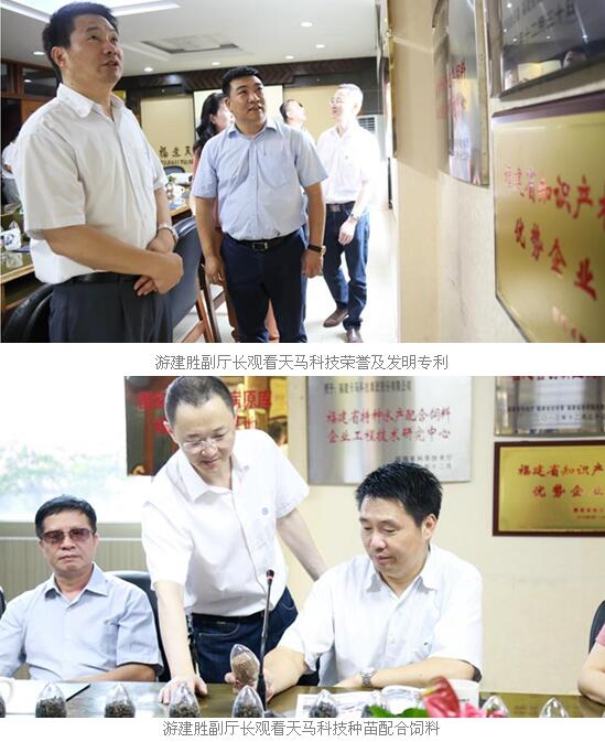 游副厅长指出,水产饲料行业是我国饲料工业中一个重要的支柱产业,是支撑现代水产养殖业发展的基础,是联系种植业、水产养殖业、水产品加工业等产业的纽带,在我国已经成为关系国计民生的朝阳产业之一。天马科技作为水产配合饲料行业的高端技术领域——特种水产配合饲料业的领军者,要充分发挥引领示范作用,进一步完善了企业科技创新平台,不断提高企业科研综合水平,支撑中国水产养殖业健康可持续发展。省科技厅将大力支持天马科技的科研工作及相关项目申报,为天马科技与国内外高端科研院所达成战略合作牵线搭桥,为天马科技发展保驾护航。