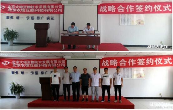 2017年8月9日,驻马店大地饲料有限公司与农信互联成功签订战略合作协议。大地股份集团华中事业部驻马店公司营销总经理郭小伟、驻马店大地饲料有限公司财务经理汪德凯、河南农信总经理冯仰照、河南农信驻马店区经理杨志刚等出席了签约仪式。