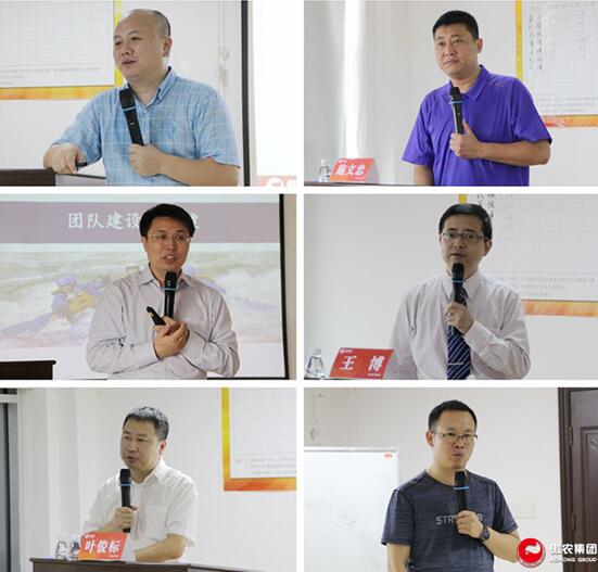 期间,集团董事、江西区总裁刘国梁,集团副总裁、傲农学院常务副院长叶俊标,湖南事业部总裁杨再龙,市场部总监匡俊分别围绕“行业发展趋势与傲农发展战略”、“傲农文化”、“大客户(规模猪场)开发与管理”、“以文化引领营销”等专题做了分享交流。培训还特邀明伦书院执行院长、集团文化顾问施文忠,资深培训讲师卫全华,营销管理专家王博就“《道德经》之致胜之道”、 “卓越团队五大关键”、“华为大客户营销战略与战术”做了专业讲解。