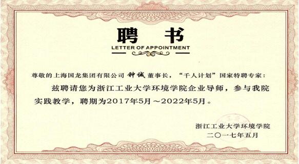 上海国龙:热烈祝贺集团董事长被聘请为浙江工业大学企业导师