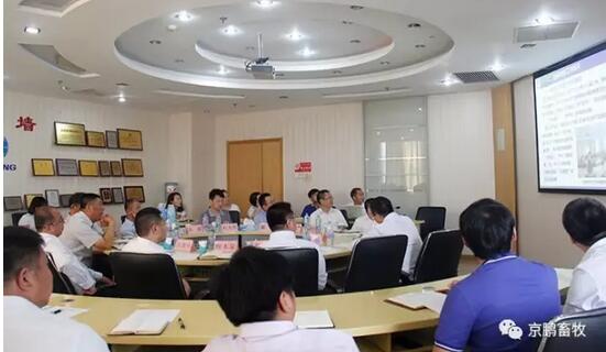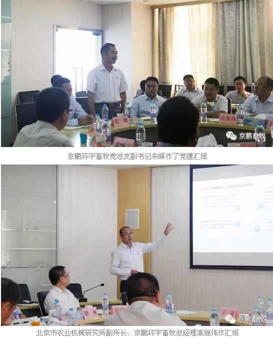 京鹏环宇畜牧公司党总支书记、董事长王浚峰主持调研并介绍了环宇畜牧公司的发展历程,党总支副书记朱晖汇报了党建工作开展情况,总经理高继伟汇报了经营运行情况。