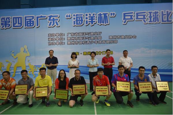 2017年8月10日至11日第四届广东“海洋杯”乒乓球比赛在惠州市体育运动学校综合馆举办。省海洋与渔业厅副厅长何少青出席开幕式并致辞,惠州市政协副主席、海洋与渔业局局长王正印出席活动。来自全省海洋与渔业系统及兄弟单位的27支队伍150多名运动员参与比赛。我司派出四名代表参赛,获得了“优秀组织奖”。