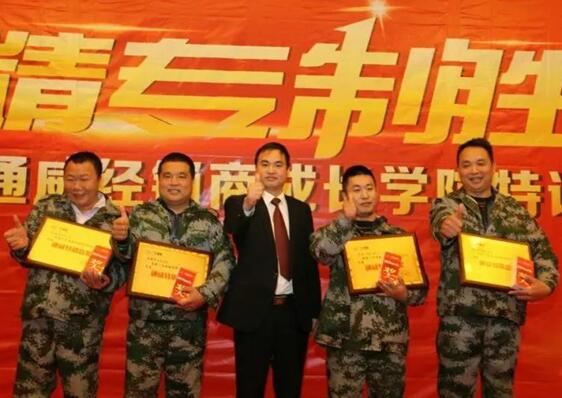 廖老板(右二)参加公司组织的经销商培训并获得奖励
