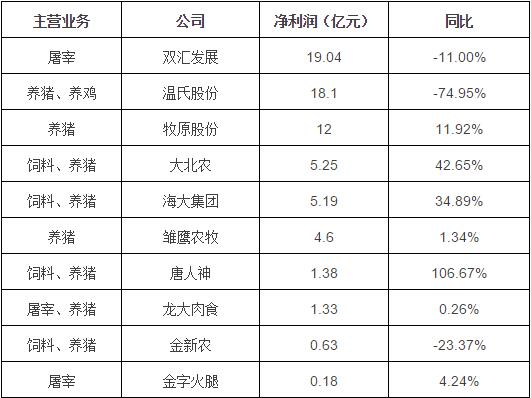 总体来看饲料企业利润增长较大,养殖企业利润增长低缓。